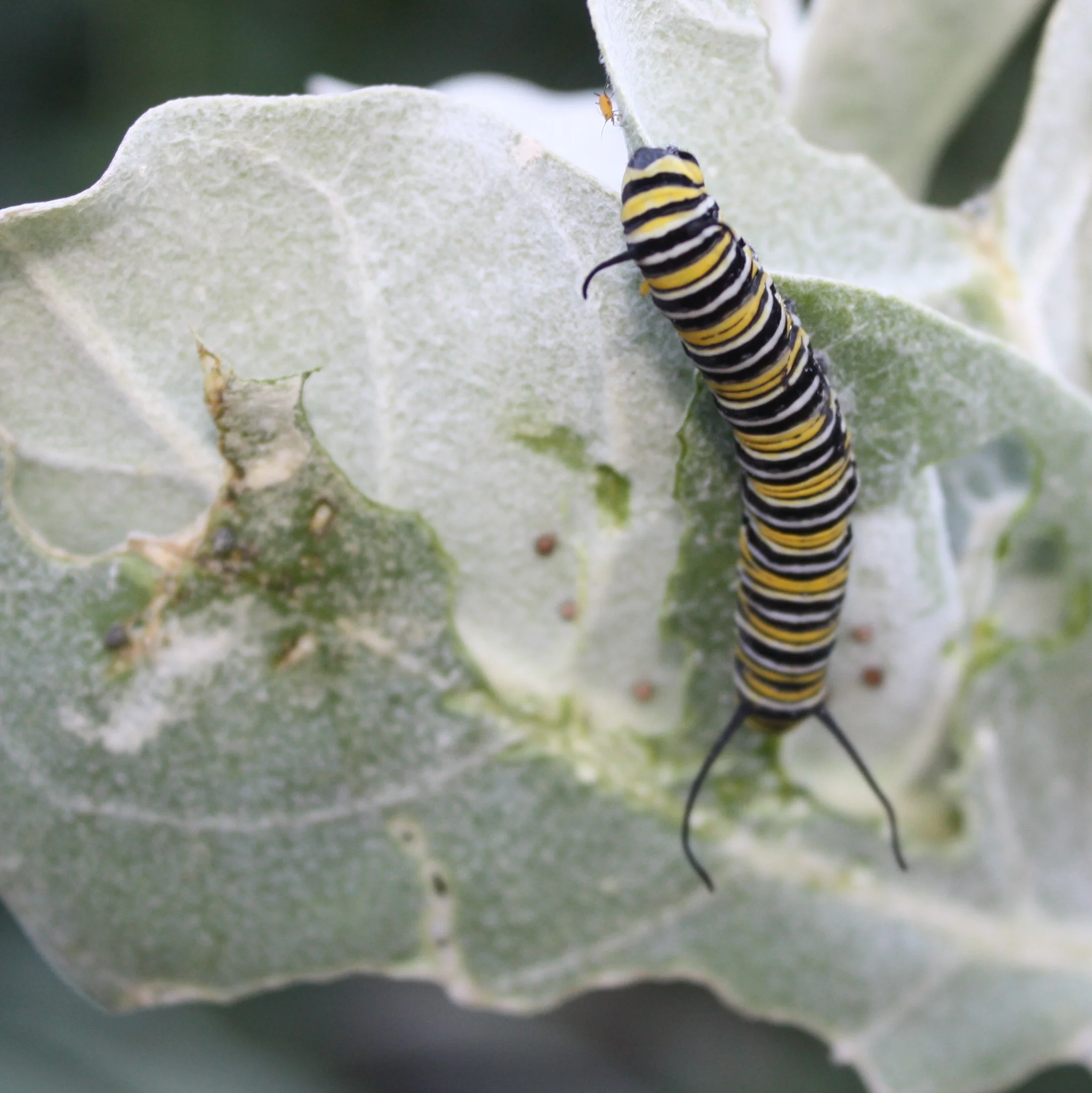 One thing to remember when you plant this is that milkweed is a FOOD source - it will get eaten! And it will look like it. If you want your garden to remain pretty even while the milkweed is chewed down to the stems, then you will want to plant the milkweed in between other plants whose leaves are not a food source. At Kapp & Kappy, we inter plant giant red pentas or red salvia with milkweed and other pollinator attracting flowers.